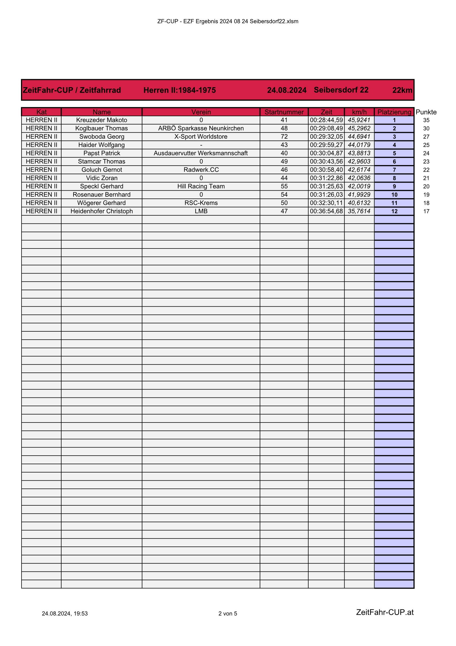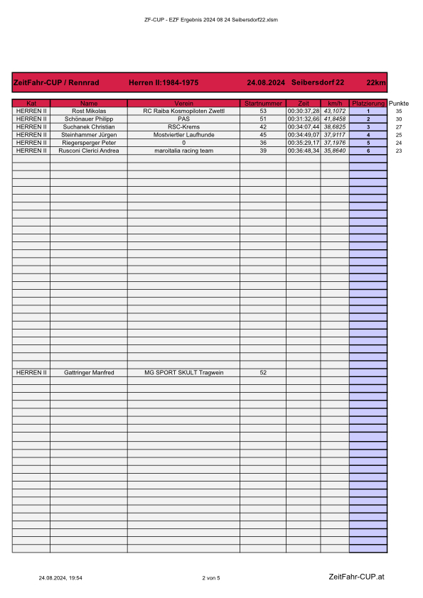 | 12. AK | Christian Suchanek | 34:07 | 38,7 km/h |