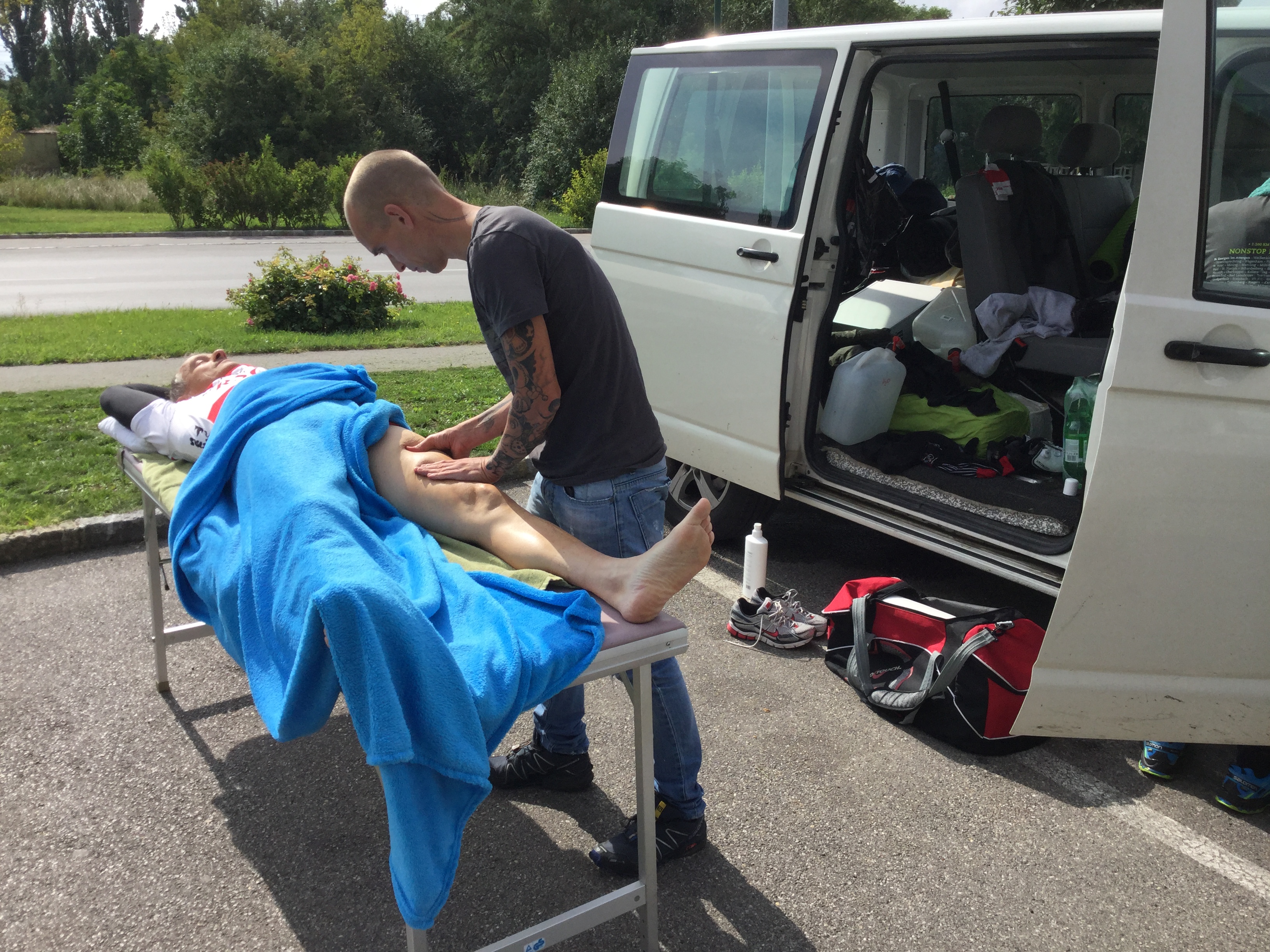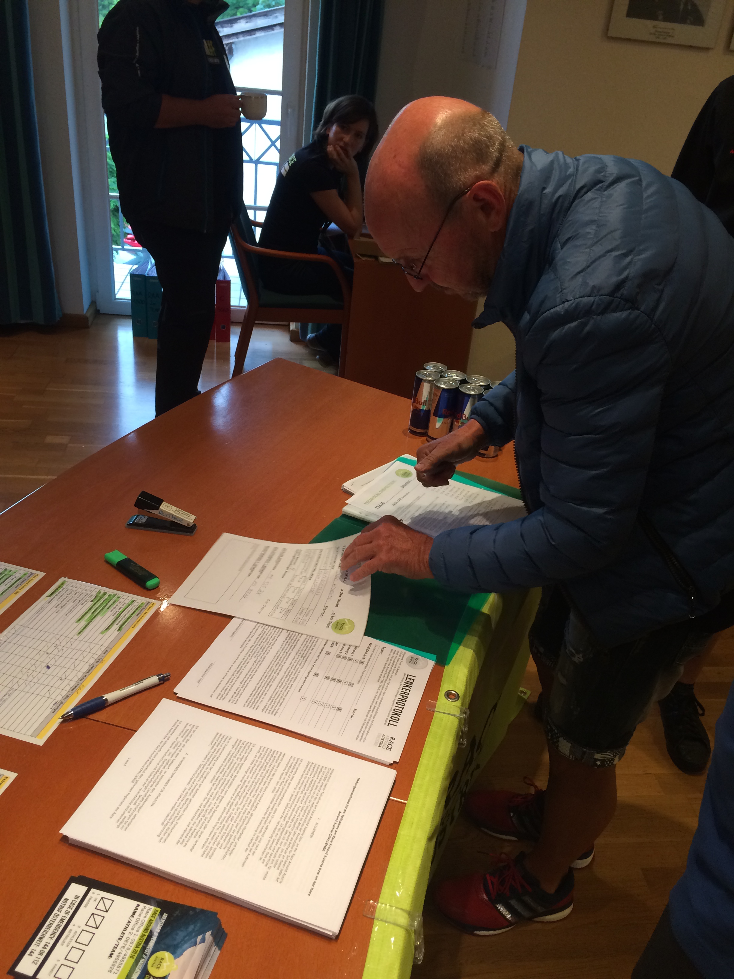 Auf einem Parkplatz zwischen Hermagor und Kötschach-Mauthen wurde überlegt, ob die beiden noch gesunden Rennfahrer, Hans Mittelhofer und Gerhard Wögerer, das Rennen für den RSC wenigstens finishen sollten. Die Rennfahrer wären grundsätzlich dazu in der Lage und auch bereit gewesen. Nach Abwägung aller dadurch sich ergebenden logistischen und sonstigen Problemen (stehen die Autos noch so lange zur Verfügung, erreichen wir dann das Ziel noch vor der Karenzzeit für die 4er Teams, kann Fabian, unser Physiotherapeut, der hervorragende Arbeit geleistet hat und den wir dann noch dringender benötigt hätten, noch so lange bei uns bleiben usw.) fassten wir nach reiflicher Überlegung gemeinsam – teilweise den Tränen nahe – den Entschluss, wir steigen aus dem Rennen aus!