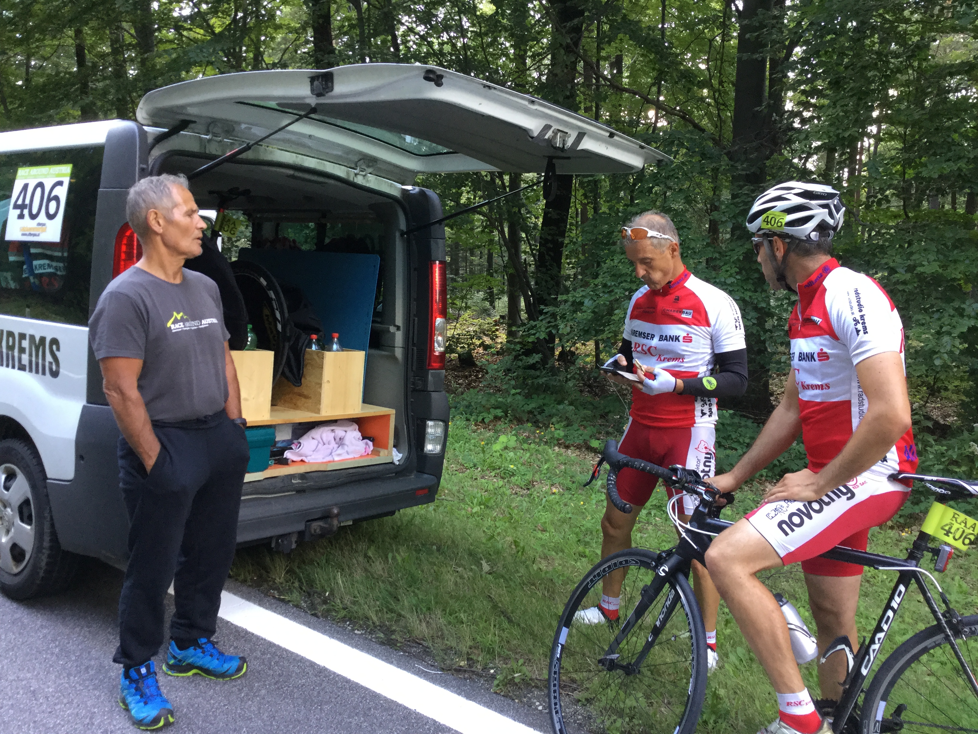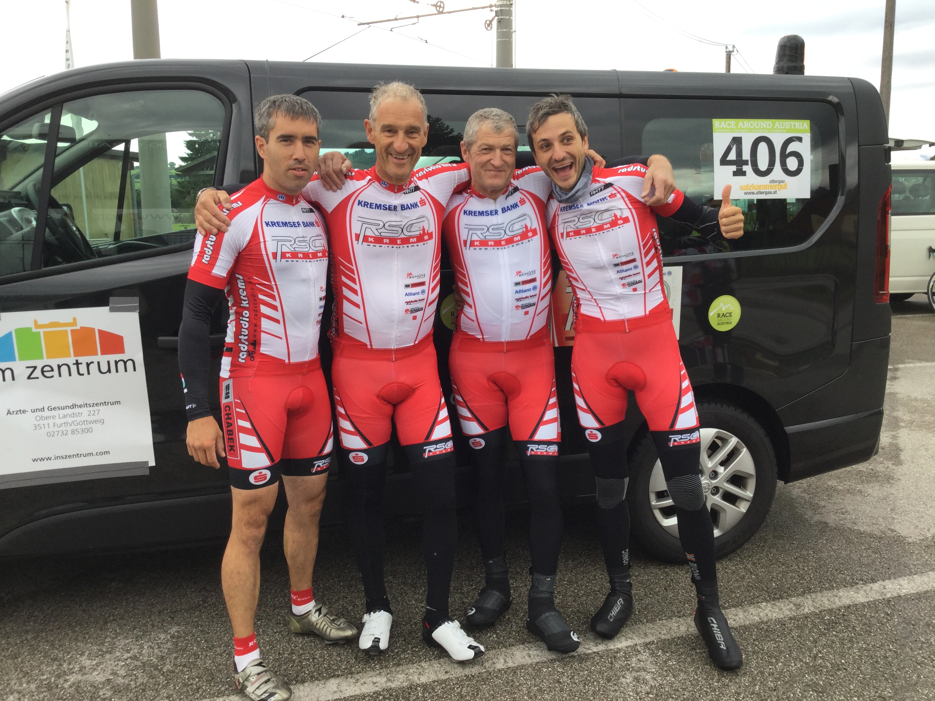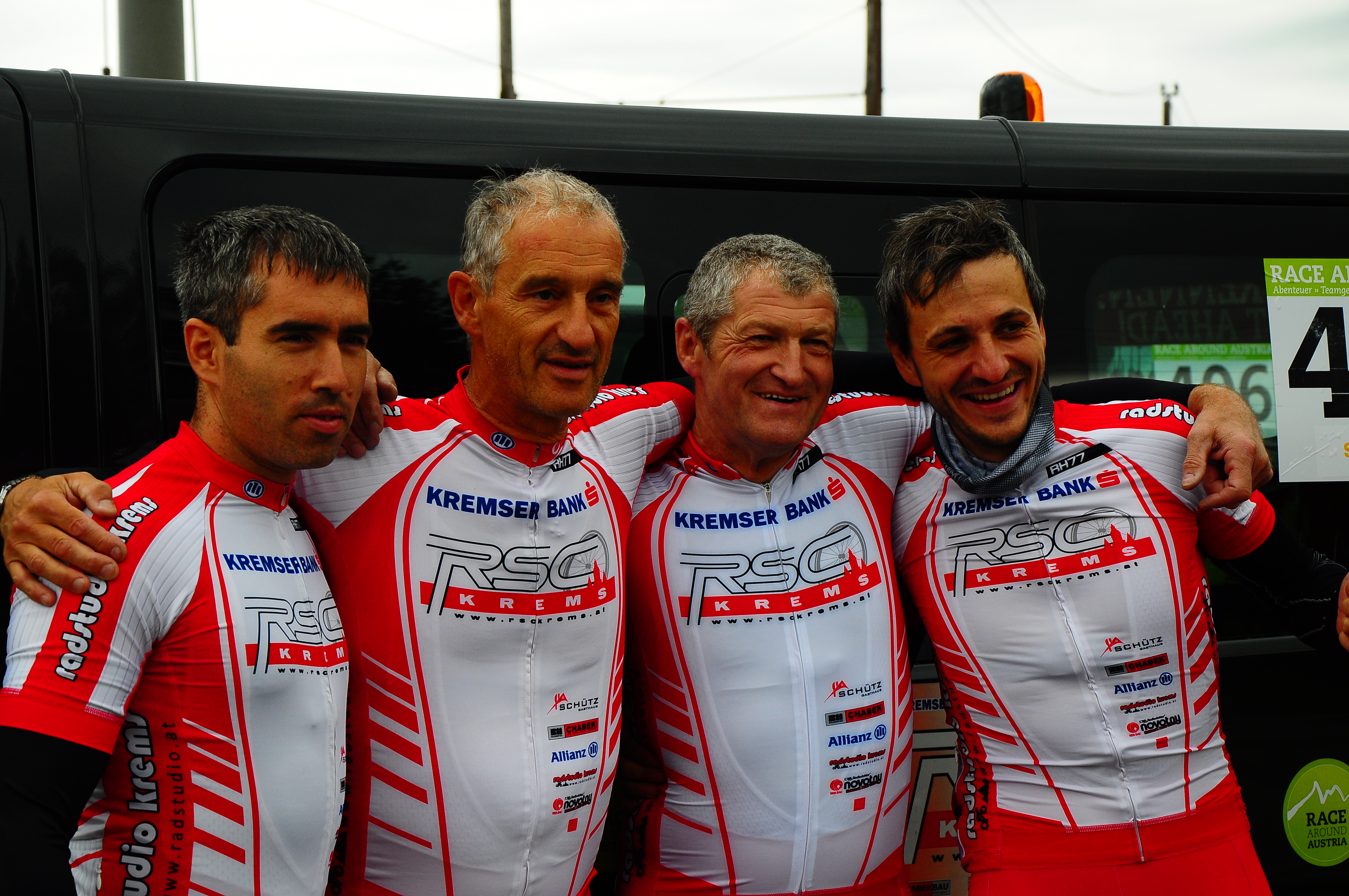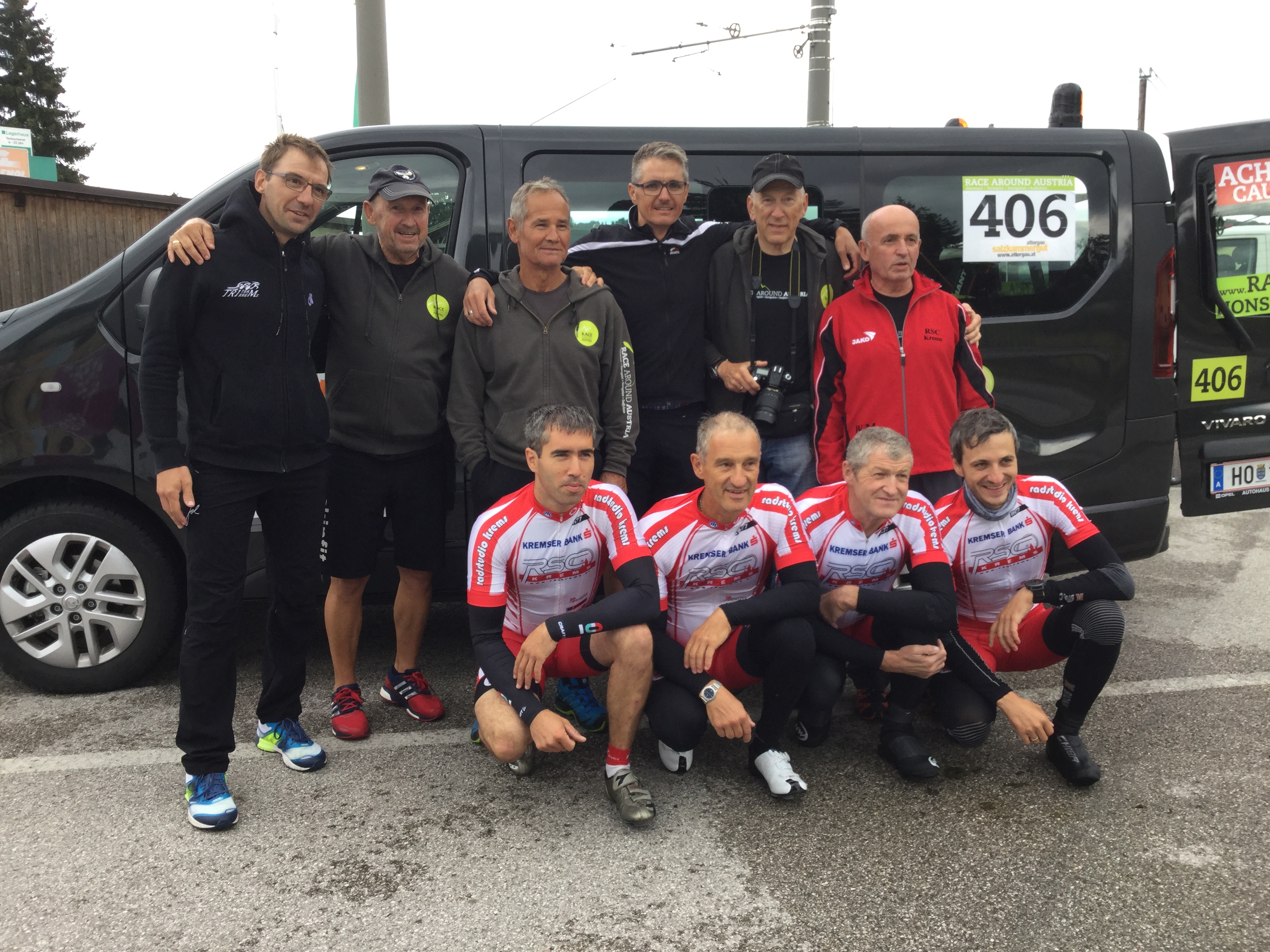 Wir haben jetzt unser komplettes Team für das Race Around Austria beisammen. Nachdem die vier Fahrer, Brunner Josef, Mayer Franz Josef, Mittelhofer Hans und Wögerer Gerhard ja schon länger feststehen, konnten wir nun auch unser Betreuerteam komplettieren. Als achter Betreuer wurde Erich Stauffer gewonnen. Er war schon im Vorjahr für das Viererteam von Radshop Kalteis als Teamleiter im Einsatz und hat sich dort bestens bewährt. Die Betreuer wurden in zweier Team unterteilt und werden nach einem genauen Zeitplan, dankenswerter weise von Franz Gattringer erstellt, im Einsatz sein.