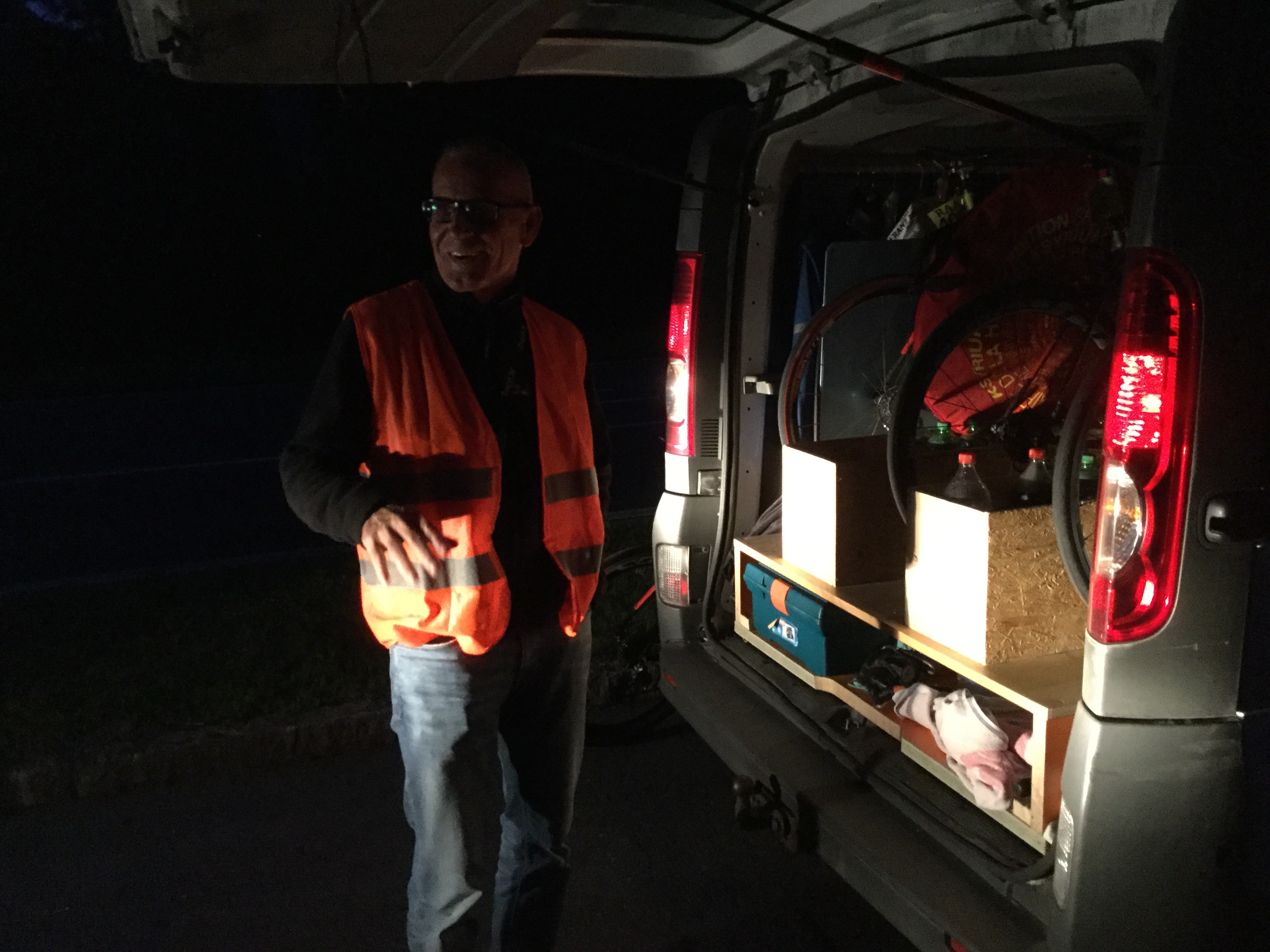 Die Tour ging durchs Strassertal, Maissau, Pulkau, Weitersfeld, Horn, Gars, Hadersdorf wieder zurück nach Krems. Nach 130 km kamen wir um 1.00 Uhr wieder zurück. Der Test war sehr erfolgreich, da alle Dinge bestens funktionierten. Der Regen hat uns auch verschont. Ein paar Blitze am Nachthimmel war das einzig Beunruhigende.