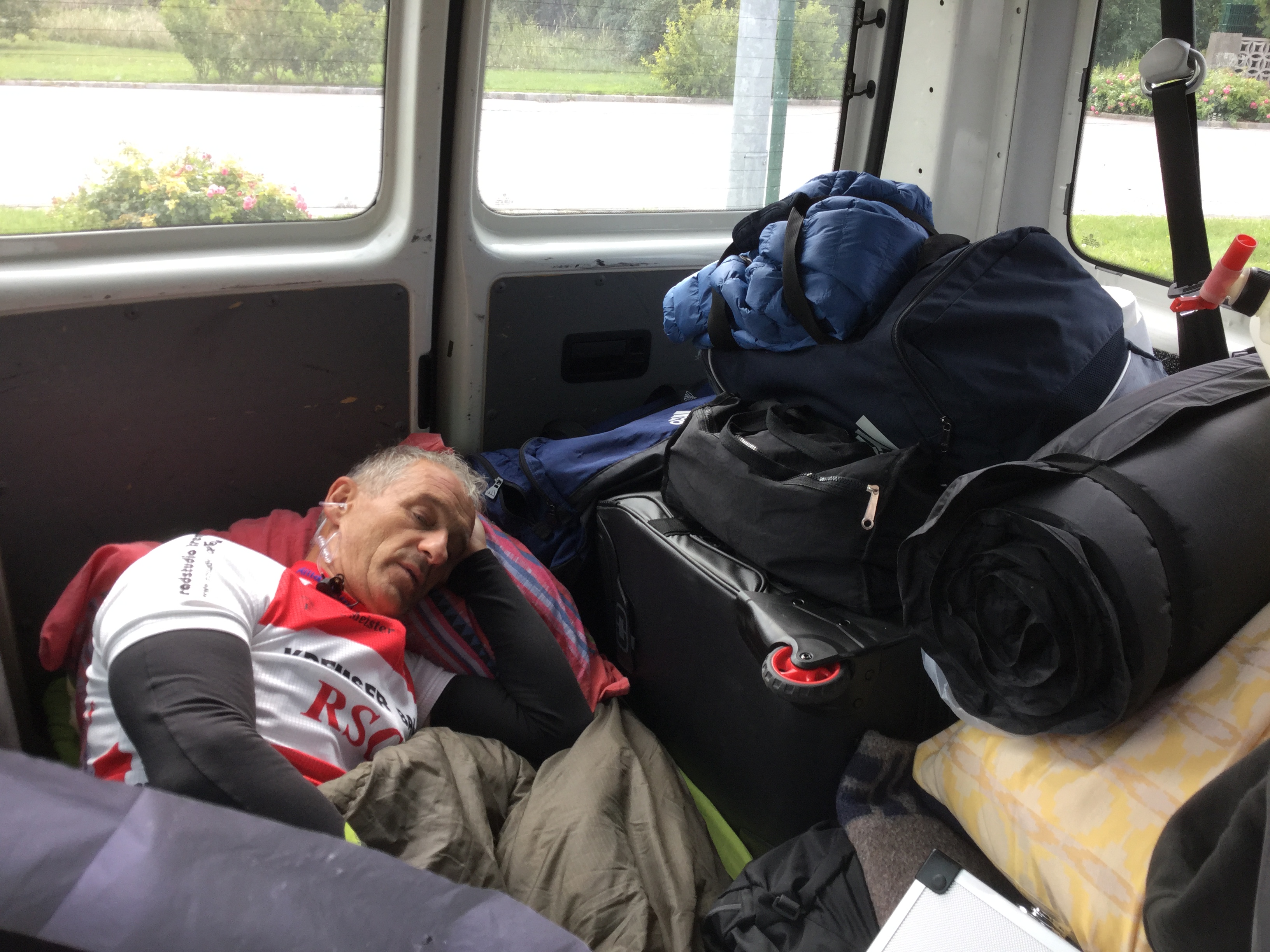 Aber diesen Wind hatten auch alle anderen Teams. Trotzdem waren wir dann zwischenzeitlich schon wieder auf Platz 6. Alle (Rennfahrer und Betreuer) waren top motiviert und nur auf das Ziel (unter 72 h zu fahren) fokussiert. F.J. Mayer hat bei seinem letzten Einsatz bis Halbenrain (bei KM 871,4) alles gegeben. Wie sich später herausstellte machten aber gesundheitliche Probleme weitere Einsätze für ihn unmöglich.